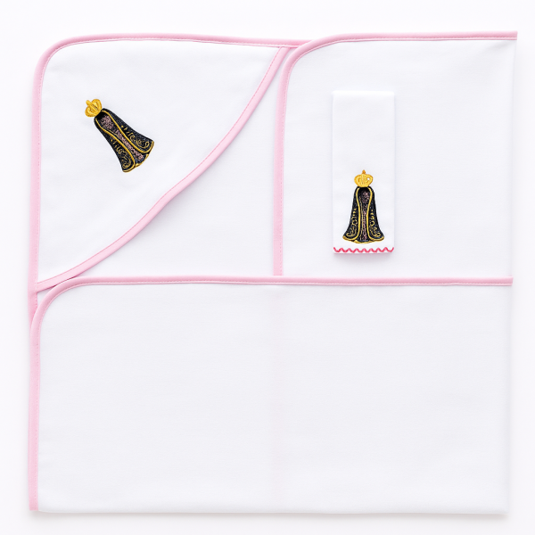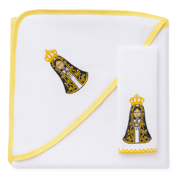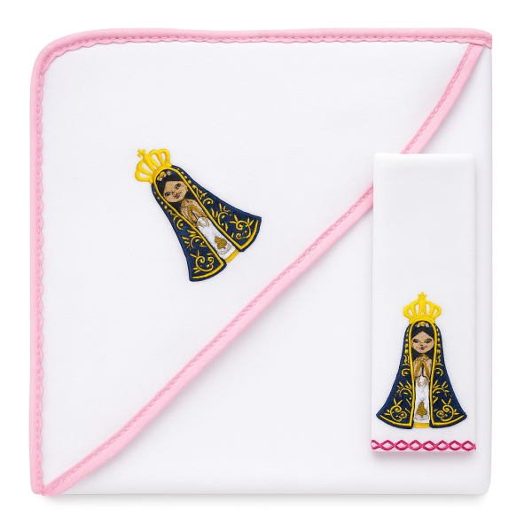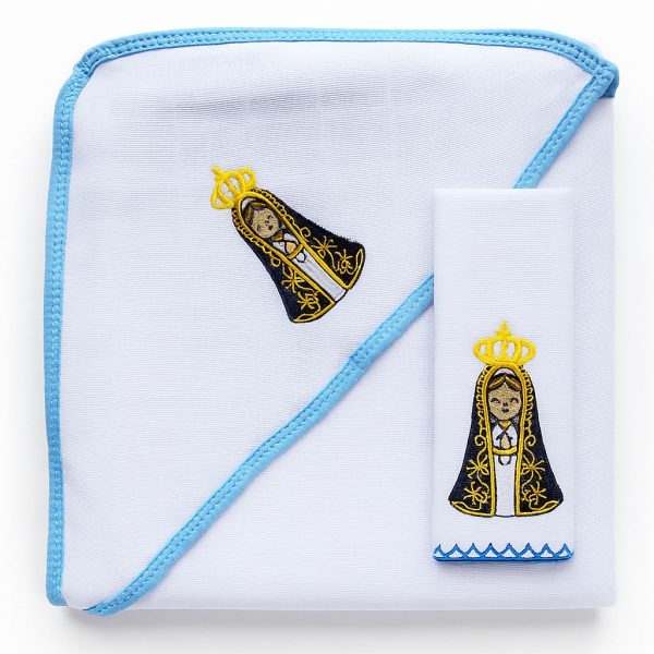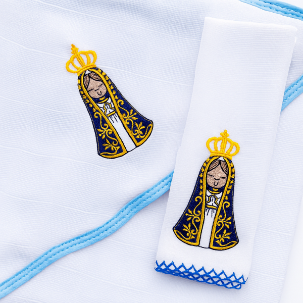 - BORDADO NOSSA SENHORA: detalhe delicado que agrega significado e torna o kit uma opção especial para presentear.
