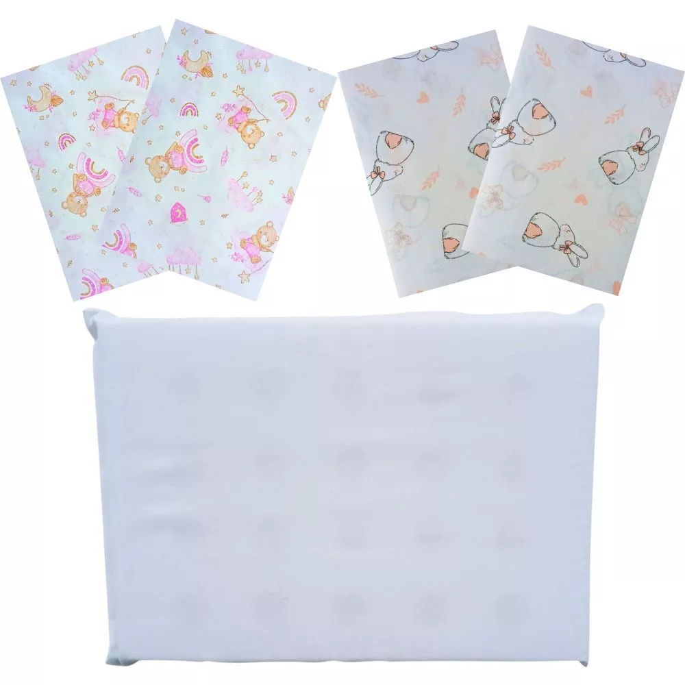 Produzido em 100% algodão percal 150 fios, proporciona um toque macio, suave e respirável, ideal para a pele sensível do bebê. Todos os itens são hipoalergênicos, garantindo mais segurança e bem-estar.
