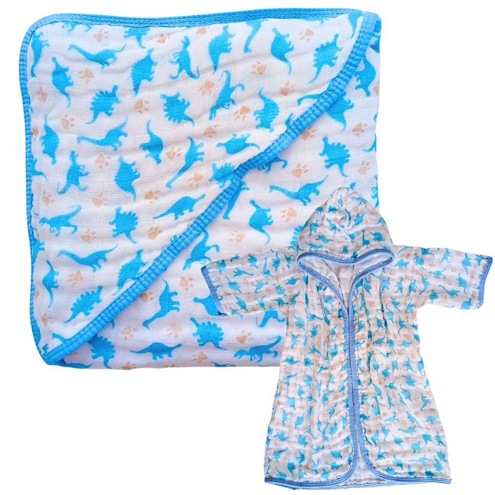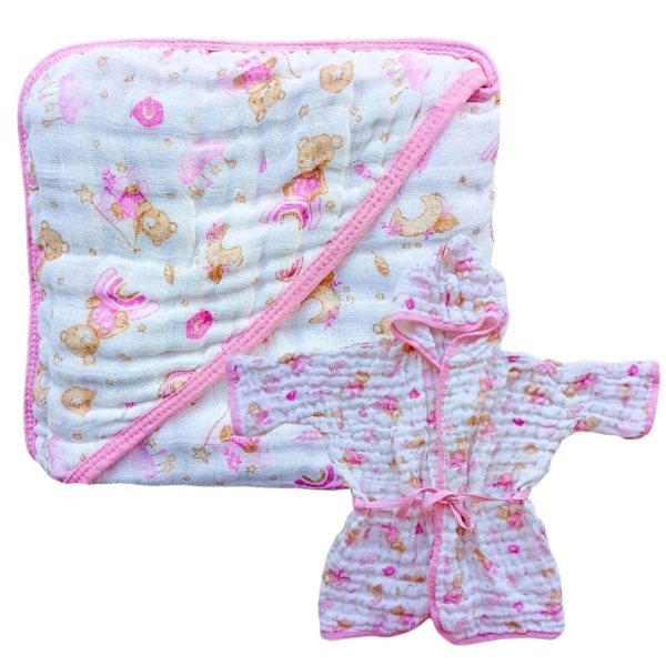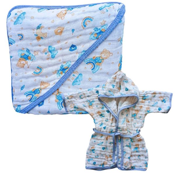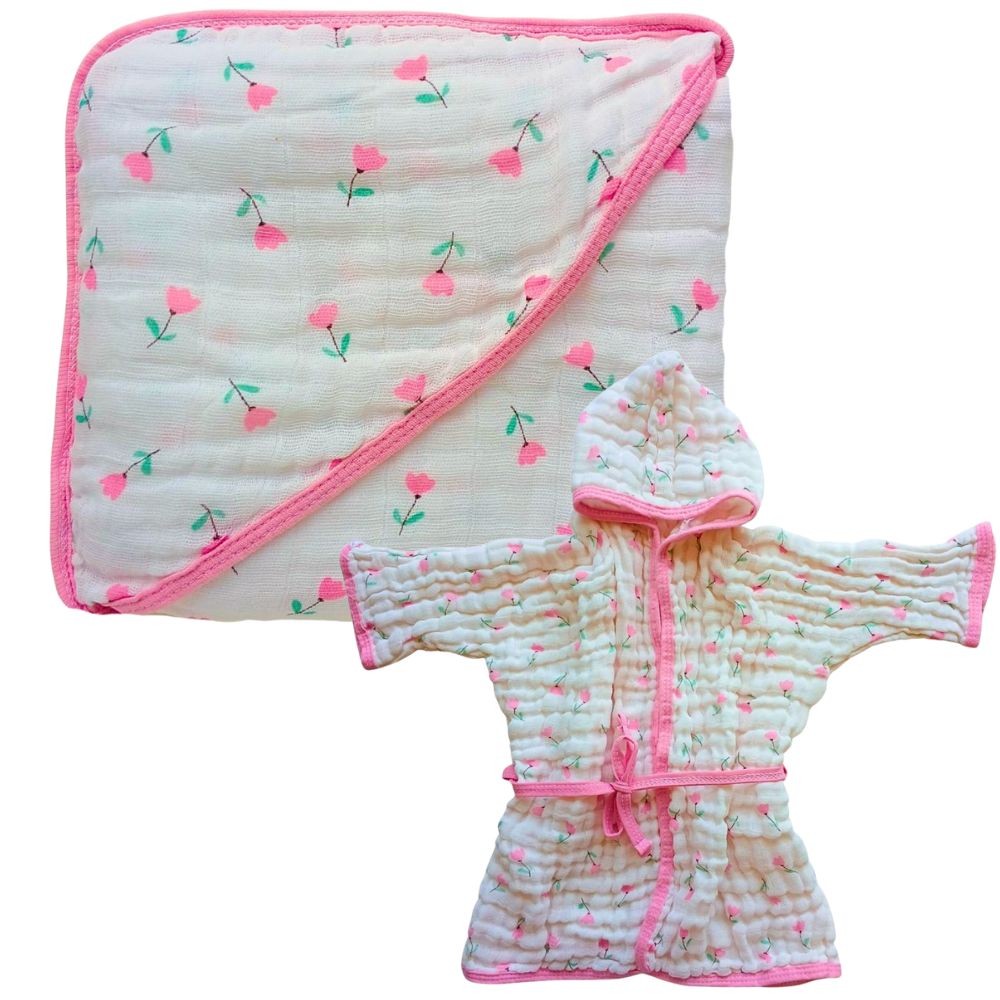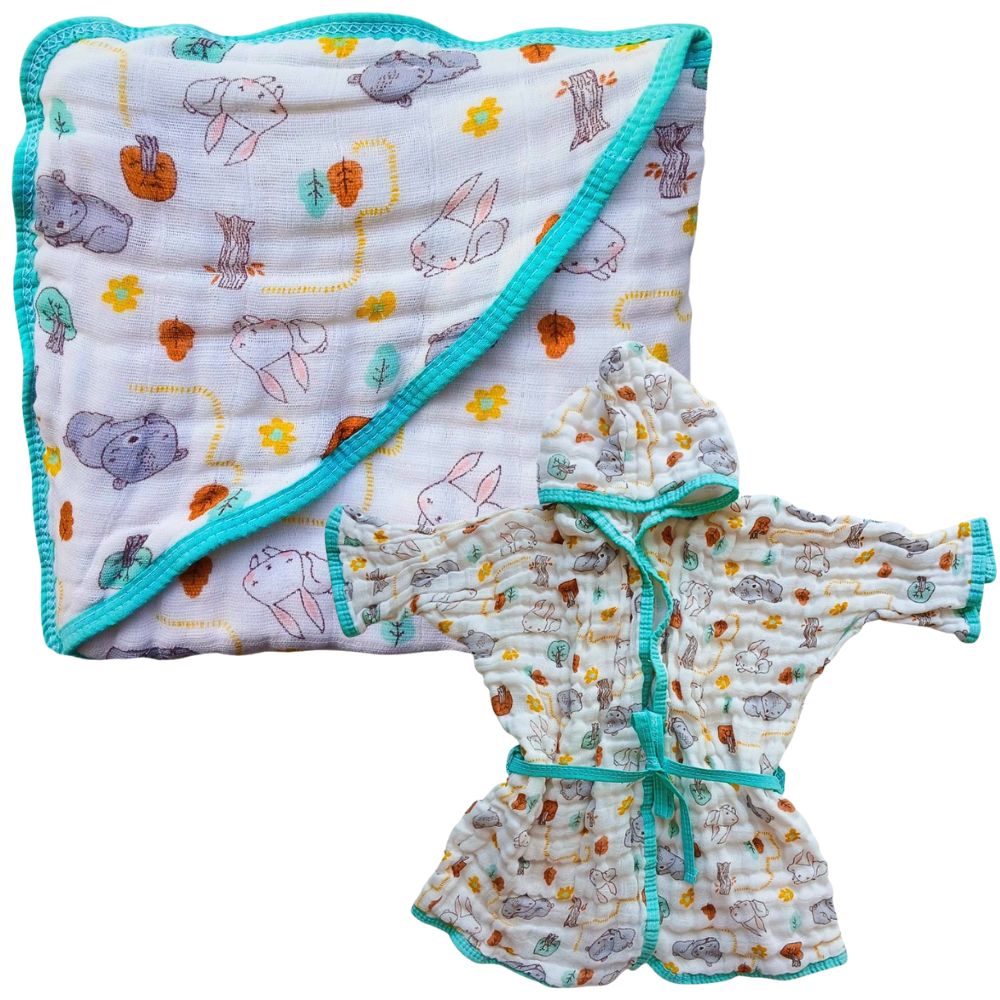 - COMPOSIÇÃO E ABSORÇÃO: Toalha 70×70 cm em tecido de fralda 100% algodão. Roupão com 2 camadas 100% algodão — alta absorção, toque macio e tecido respirável.