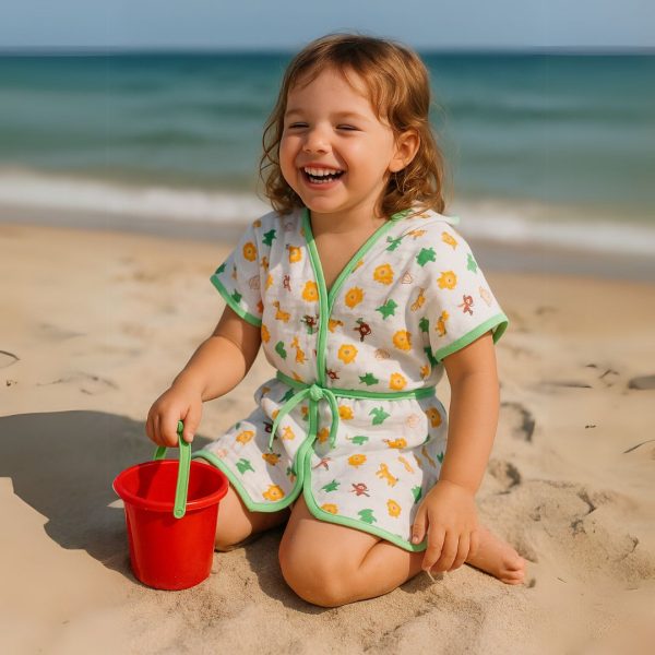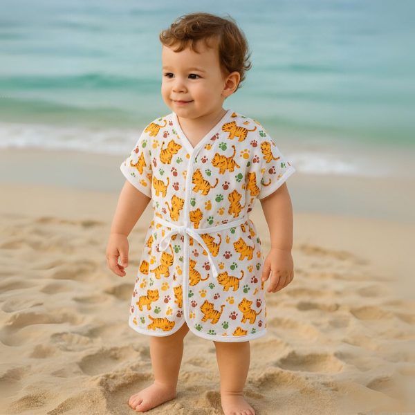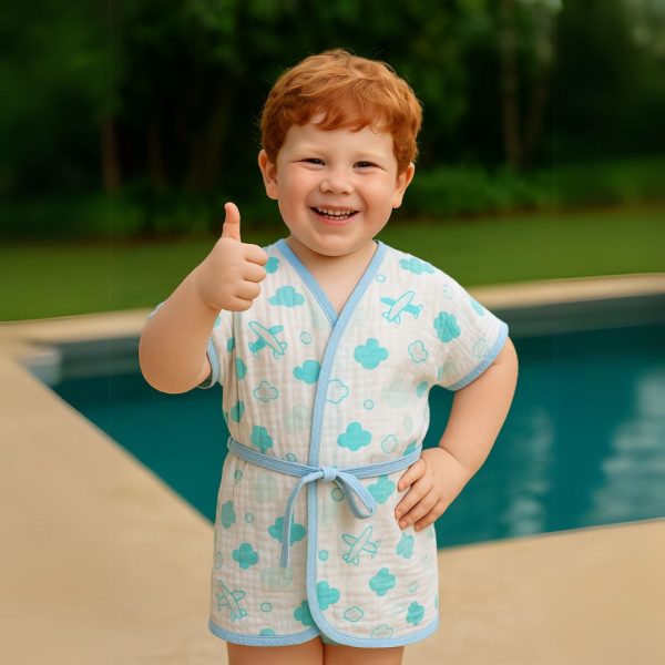 Ideal para usar em casa, na praia ou na piscina, ele proporciona conforto, liberdade de movimentos e praticidade para os pais. O cinto com passante garante melhor ajuste ao corpo, mantendo a criança aquecida e protegida.