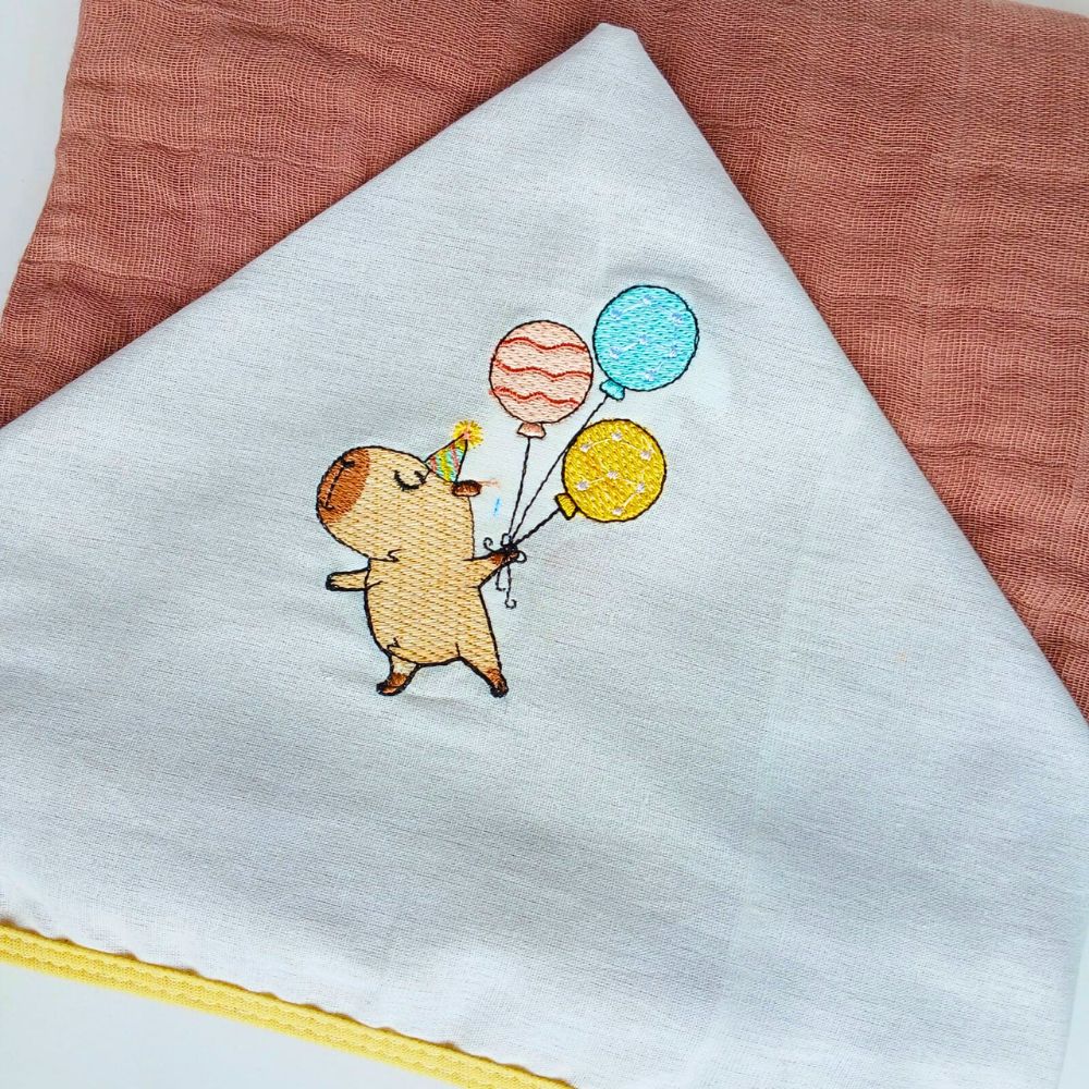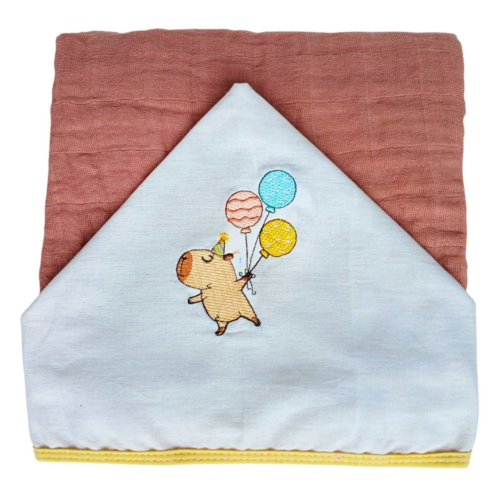 Toalha de Banho com Capuz Bordado de Capivara
